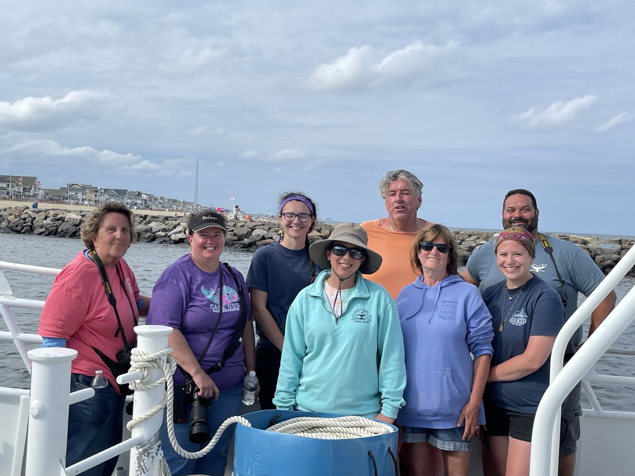 O Point Pleasant, Jersey Shore, NJ 12+ hour 8/16/2021. Glorious, sunshiny day, lots of laughs with fantastic friends and ocean bird seekers. Starting at the dock with an amazing crab. 🦀 We saw several different birds, Minke, Finback, Humpback whales 🐋 , Dolphins 🐬 (the smallest of all whales) a whales tail hourglass tattoo, Loggerhead turtle 🐢, Tuna and fresh Mahi-mahi from the bow! We collected ocean trash along the way with a gaff, saw a container ship anchored, as the entire crew has Covid & not allowed to dock and a very special picture of our fearless leader 😏