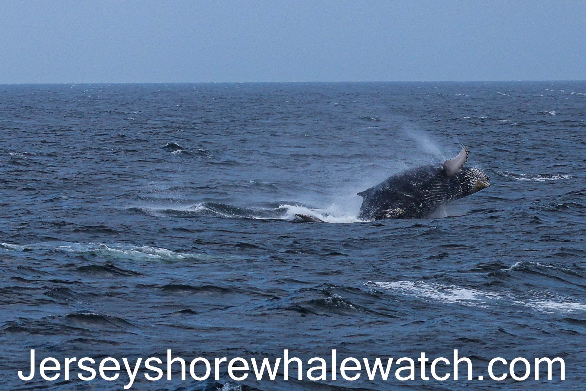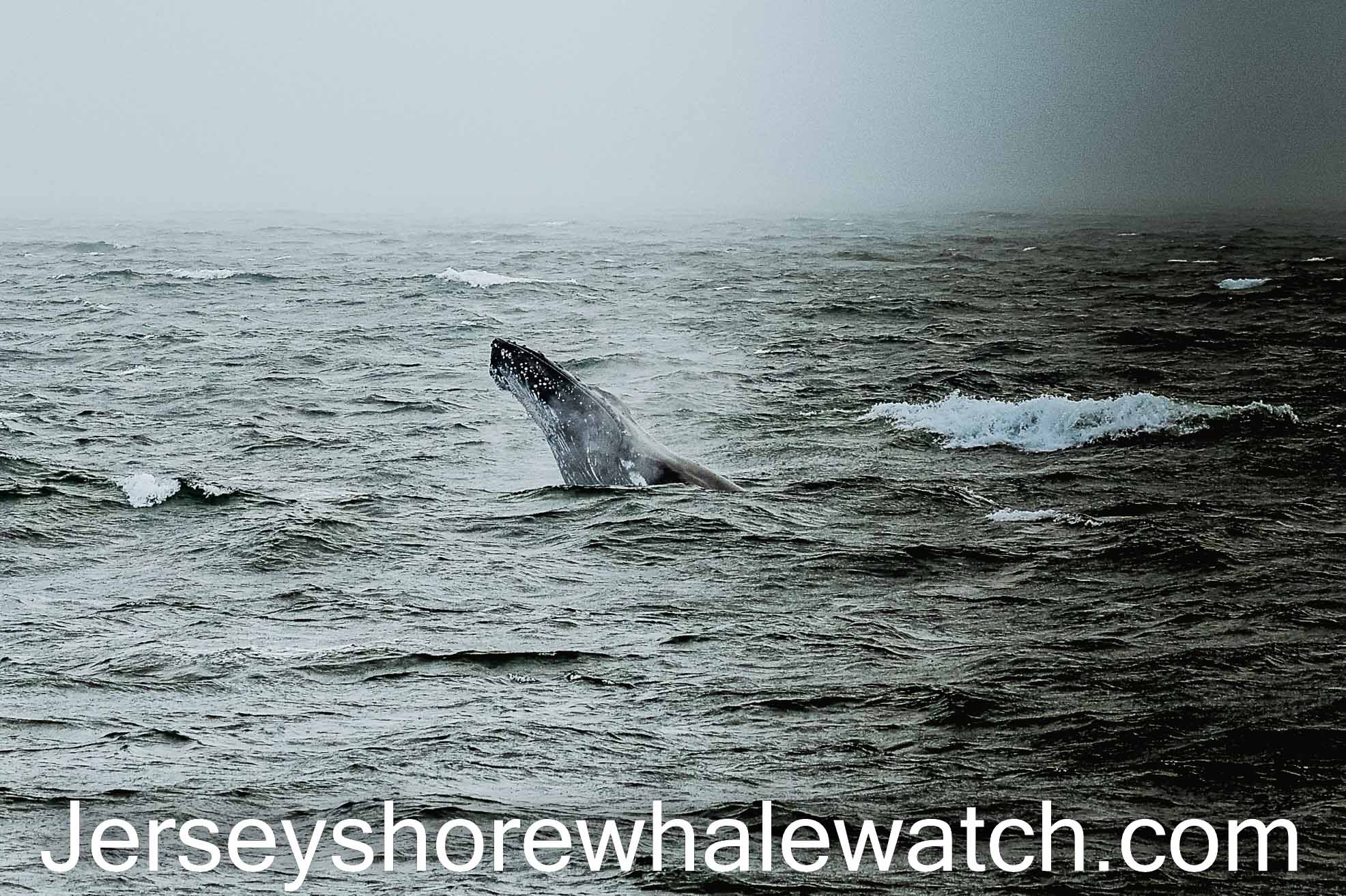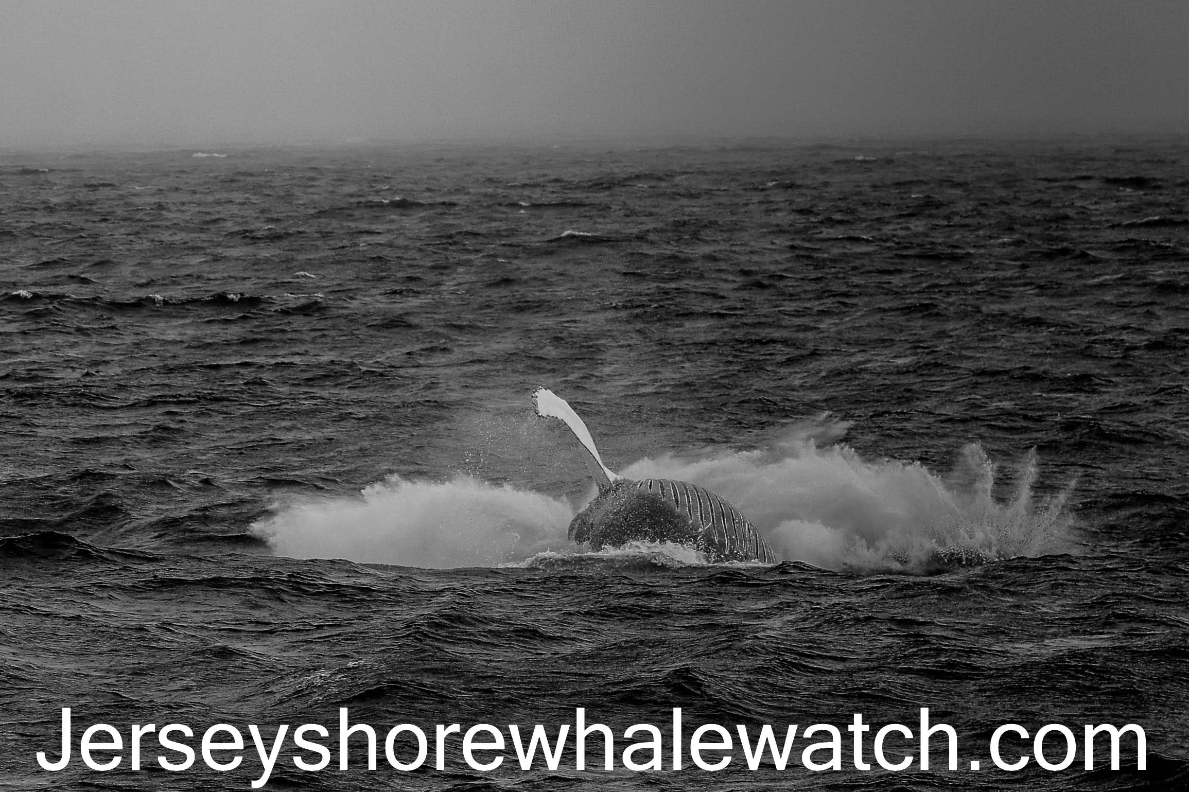This. Is. Why. I. Go. This is #40. An approximately 11 year old humpback. After looking where some whales were supposed to be, and the ocean turning into a Disney E ticket ride, we were heading back into the marina. Then, just south of Bradley Beach, this fella shows up. It started with a few shallow dives, a lunge feed and lots of wondering where next. As it started to drizzle the naturalist says, “whales like this weather, you never know, it just may….Breach!!!” And this show began. Tail throwing, and several full breaches! You can see how close to the beach we were! It was worth being in the rain to see this. Time to clean some camera gear!
