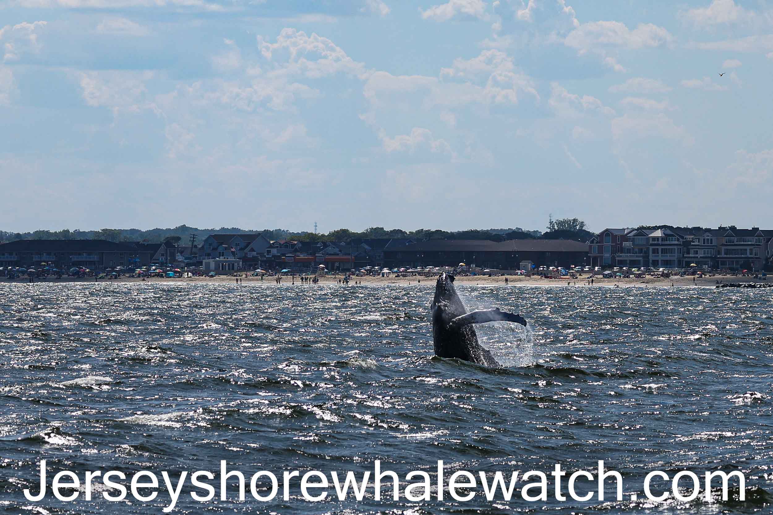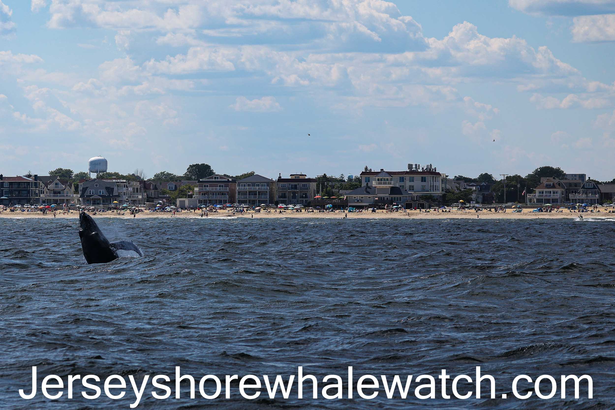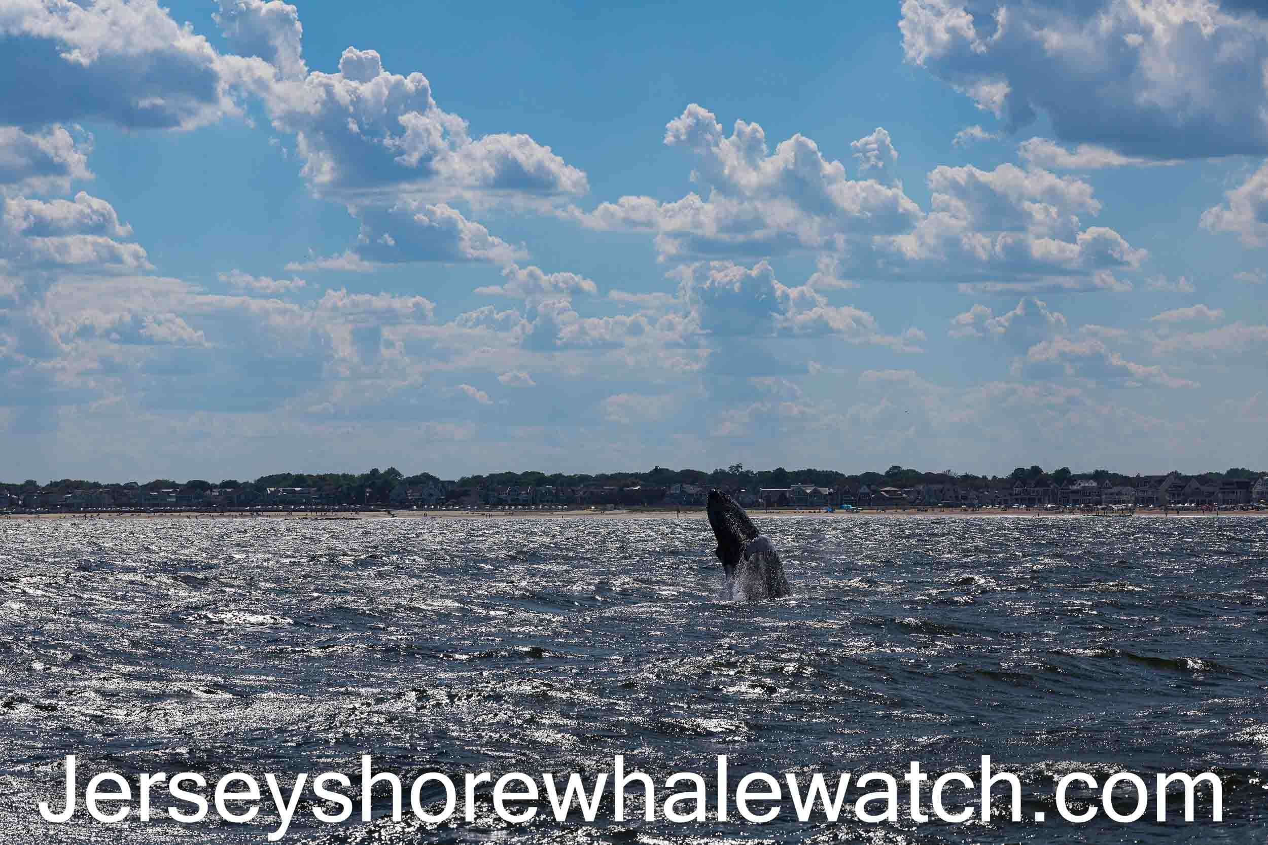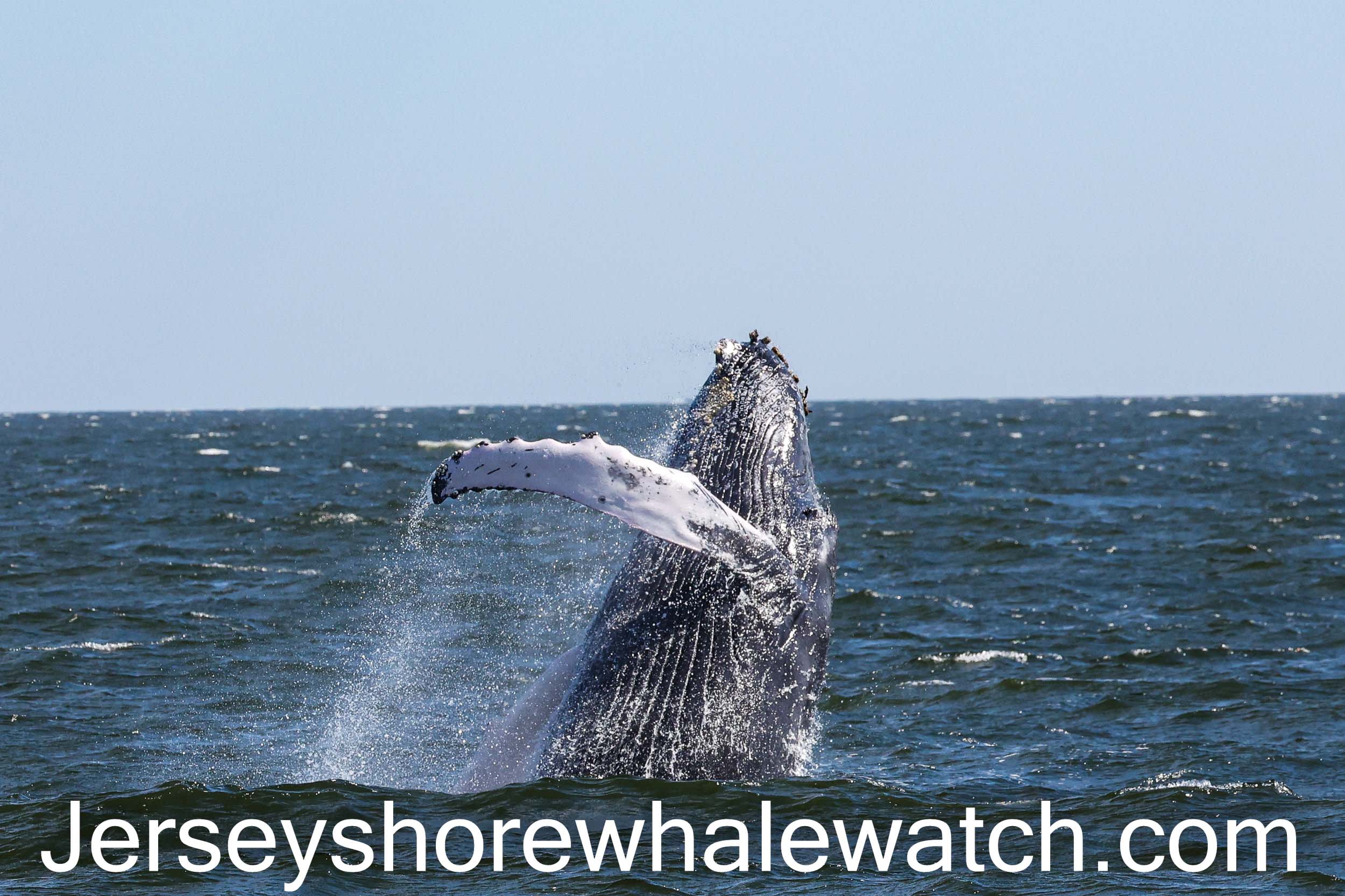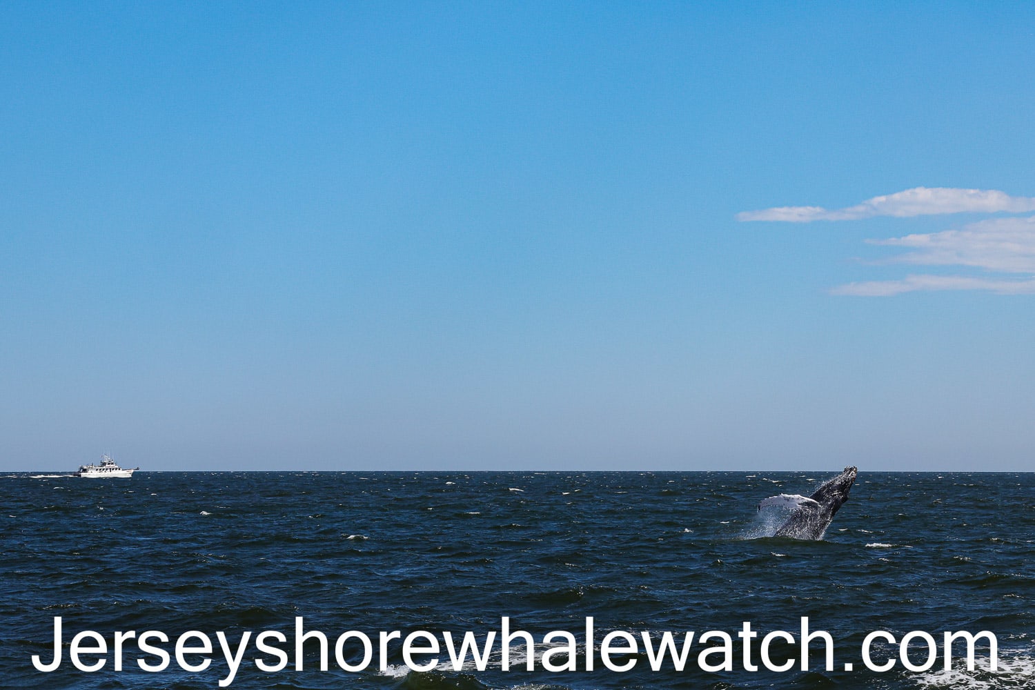 Started off by going south out of the inlet because whales we’re reported there past 2 days off of Belmar and south to the Manasquan inlet area. Less than 1/2 hour after leaving the dock we had located a whale. This whale was throwing his tail around and looked like he was having fun. Later, we came upon a whale in the Spring Lake area and oh what a find! To see a whale breach is an incredible thing. To see it breach time after time after time, there are no words. When it wasn’t breaching, it felt like something was wrong! I think I can safely say this whale breached at least 20 times. I think it was way more than that! The funny thing was if you missed getting a photo of a breach, it didn’t matter because he would do it again in a few seconds. I think this whale was either trying out for the Olympics or trying to set a record for the number of times a whale can breach within a 1/2 hour. In addition, there were times he was waving his flippers in the air. It was a magical whale watching trip. Passengers were amazed, and some asked if this was the usual. No, this was a magically day, a real adventure.