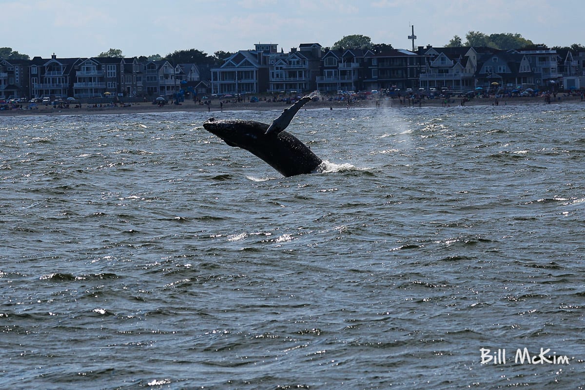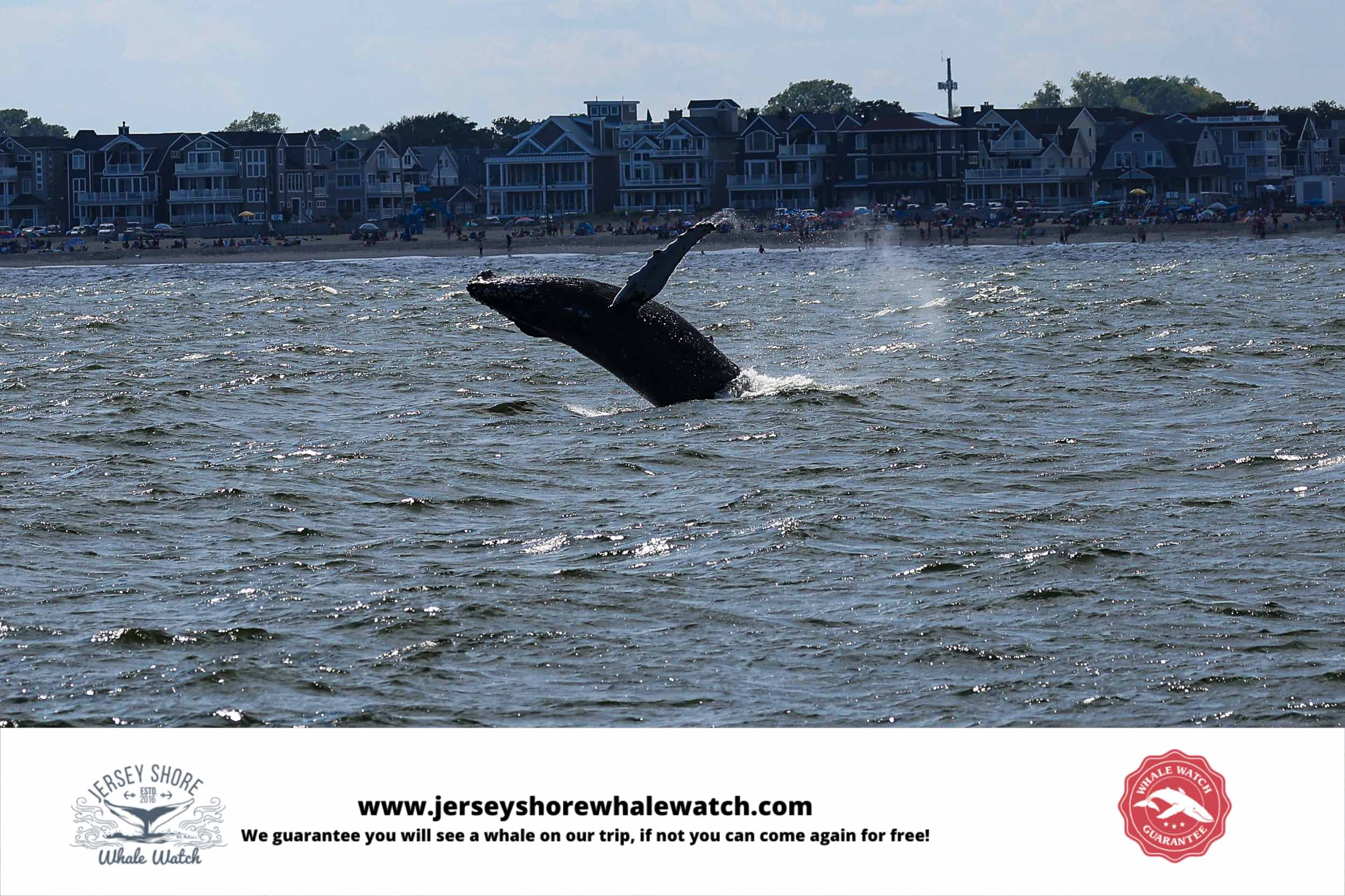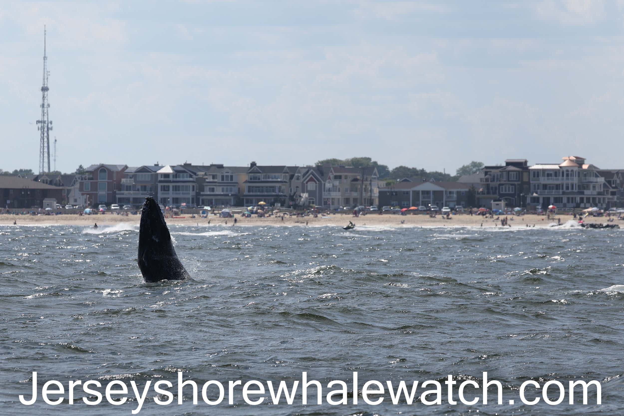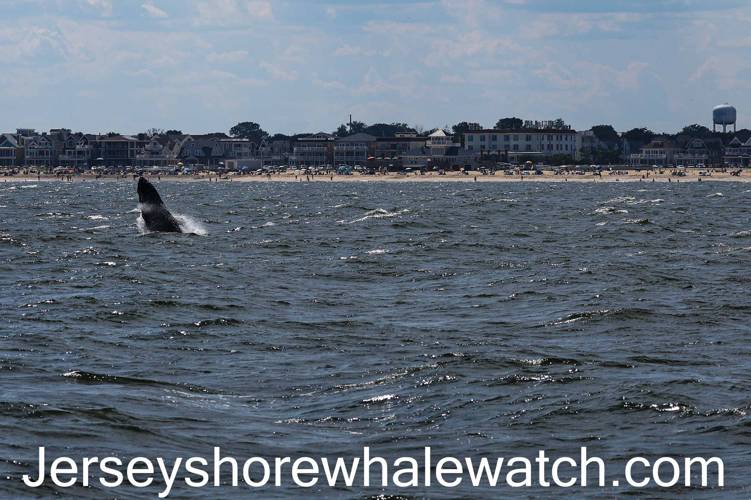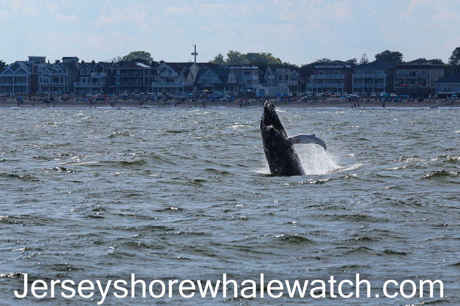 Started off by going south out of the inlet because whales we’re reported there past 2 days off of Belmar and south to the Manasquan inlet area. Less than 1/2 hour after leaving the dock we had located a whale. This whale was throwing his tail around and looked like he was having fun. Later, we came upon a whale in the Spring Lake area and oh what a find! To see a whale breach is an incredible thing. To see it breach time after time after time, there are no words. When it wasn’t breaching, it felt like something was wrong! I think I can safely say this whale breached at least 20 times. I think it was way more than that! The funny thing was if you missed getting a photo of a breach, it didn’t matter because he would do it again in a few seconds. I think this whale was either trying out for the Olympics or trying to set a record for the number of times a whale can breach within a 1/2 hour. In addition, there were times he was waving his flippers in the air. It was a magical whale watching trip. Passengers were amazed, and some asked if this was the usual. No, this was a magically day, a real adventure.
