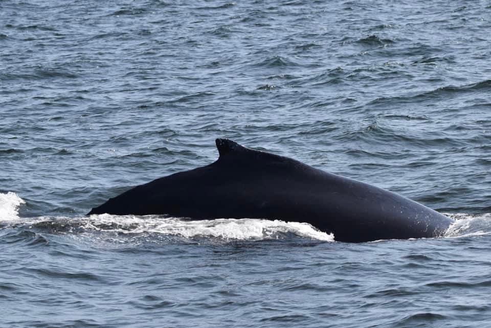On a beautiful day, you go whale watching. Today Sandy spotted the whale first!!!! It was off of Long Branch. This whale would hang out a lot on the surface and then do a deeper dive. Hanging near the surface allowed for viewing the pectoral flippers that seem to glow a beon green under the water but they are white. His tail is unique so they should easily be able to identify it. Stayed with the whale but then it was time to leave him alone. Looked for other mammals but no luck. Passed by Asbury Park and the music festival. Able to hear the music in our boat! After that, back to the dock. There were many birthday celebrations aboard the boat as well as the RU female gymnastics team. We all got to see a whale and have a whale of a good time!