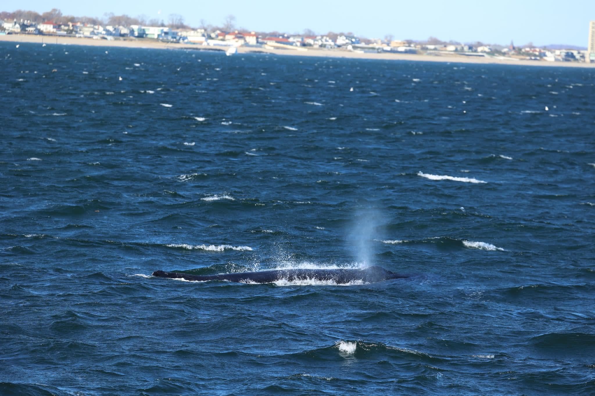 Whales had been reported off Asbury Park, so we set out with high hopes of spotting these majestic creatures. It didn’t take long before we found our first whale. While this one proved to be a bit elusive, we decided to explore further and head back toward the beach.
