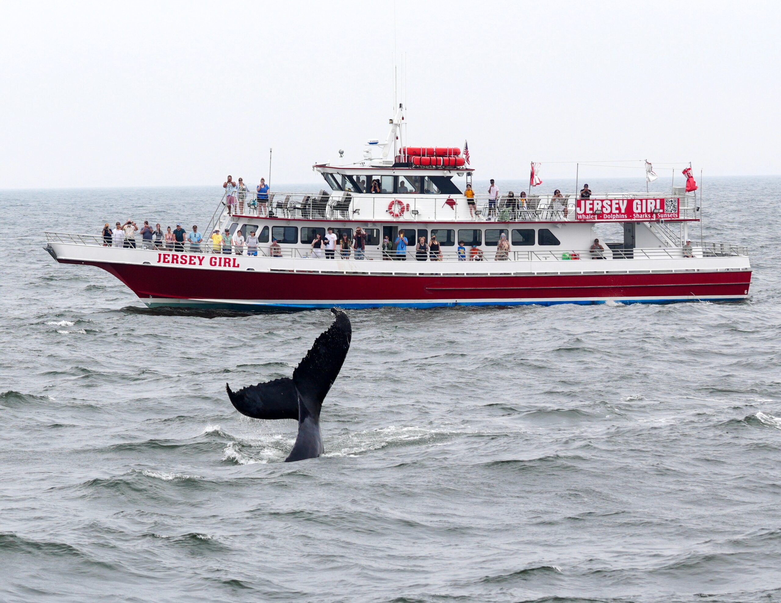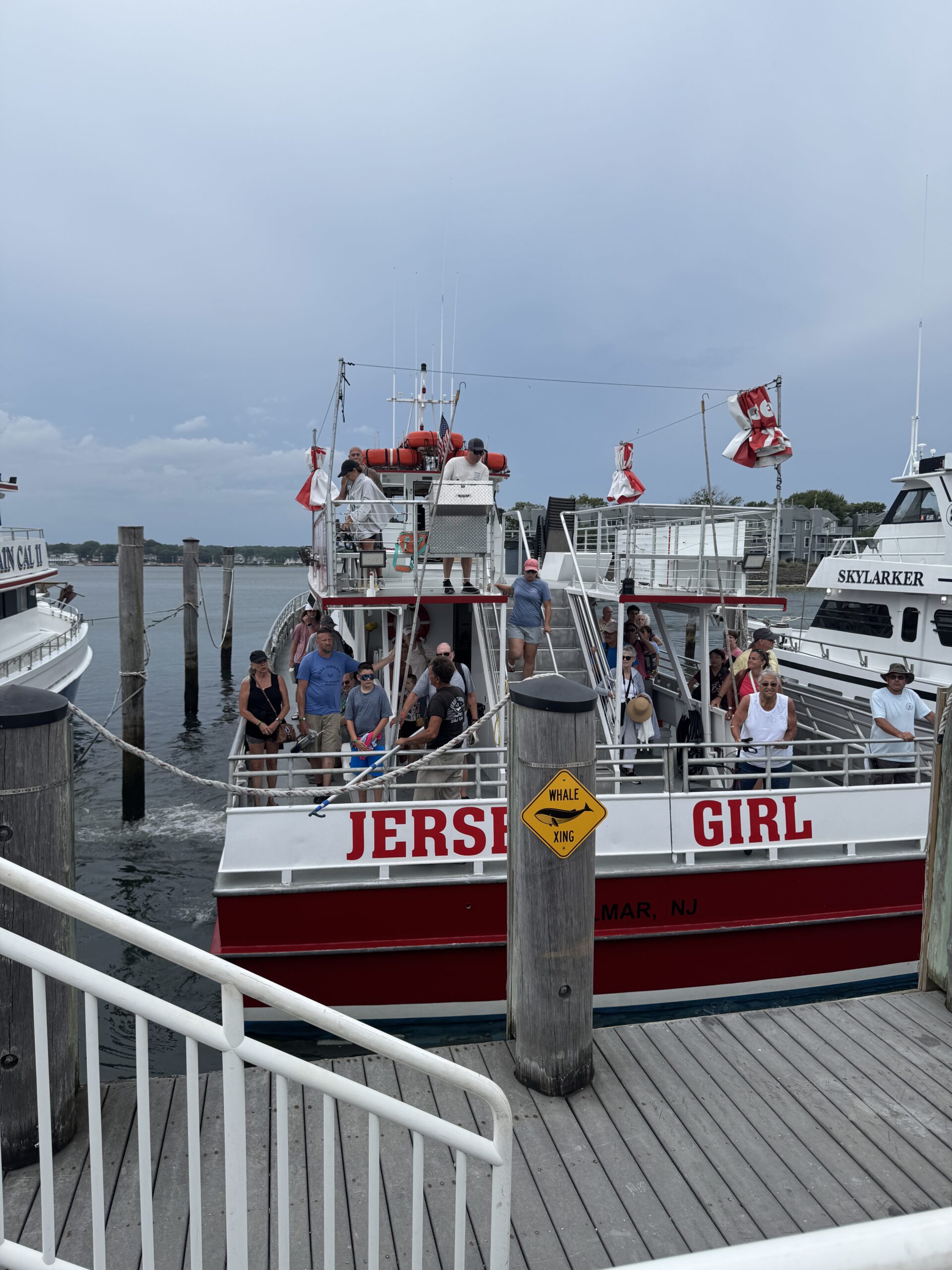This particular whale has been spotted multiple times along the Jersey Shore this season, and today it seemed eager to show off. Guests watched in awe as the whale surfaced, exhaled, and dove again with powerful grace. Cameras clicked nonstop. Some lucky passengers even caught the perfect shot of its fluke rising out of the water.