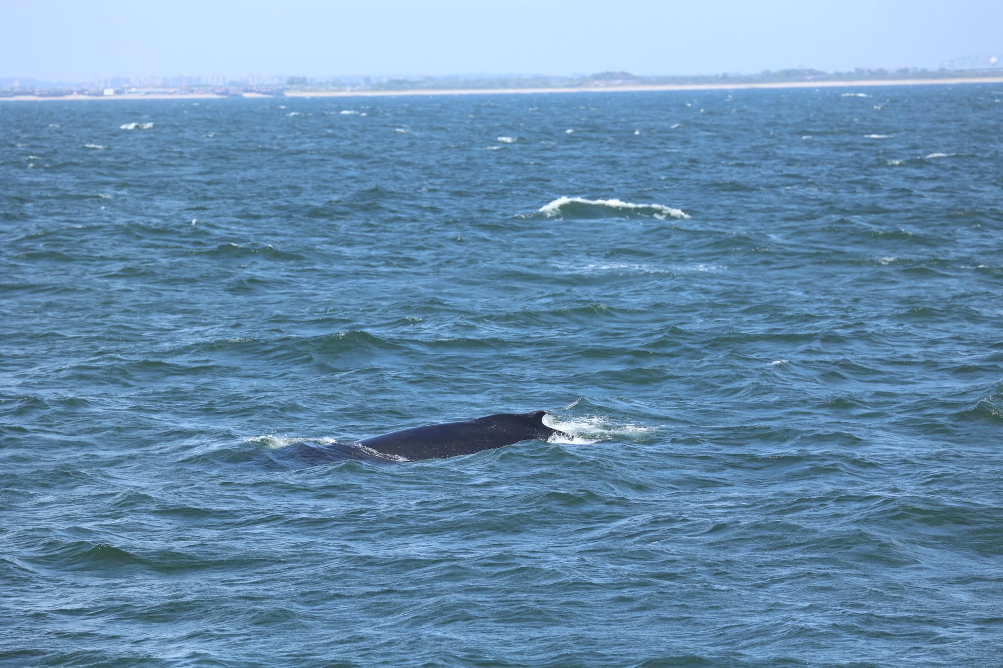 As if the dolphins weren’t enough to make the trip unforgettable, the ocean had another surprise waiting. Out of nowhere, a humpback whale surfaced right next to the boat! The massive splash drew cheers from the entire crowd, and before long, we identified this whale as NYC0086, a familiar friend cataloged by our partners at Gotham Whale.