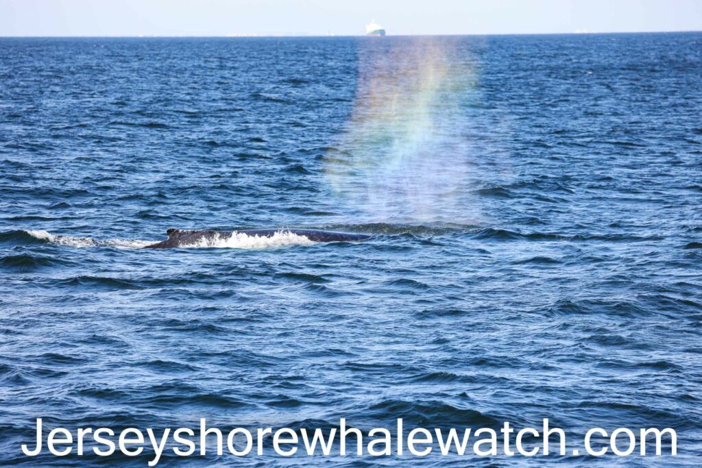 We had another awesome day whale watching. Clear blue skies led us to two different humpback whales within 1 mile of each other. We were riding from Belmar down to Point Pleasant and then turned around. We were able to spot the first humpback in Avon by the sea about 1 mile off the beach, […]